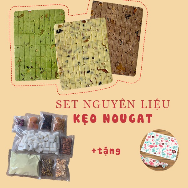 Freeship- Set nguyên liệu làm kẹo nougat vị vani/socola/matcha/dâu/trái cây + tặng 50 tờ giấy gói kẹo mua tại đây