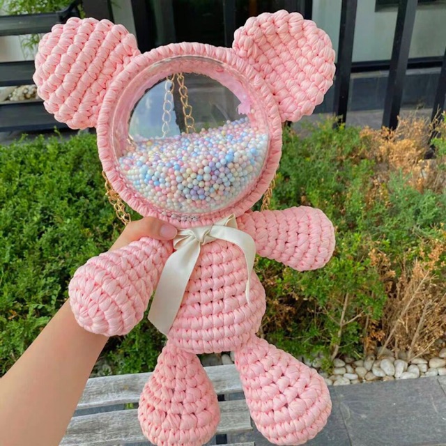 (Order) SET FULL NGUYÊN LIỆU ĐAN TÚI GẤU, nguyên liệu đan túi hình gấu nhiều màu free ship